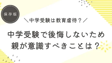 中学受験のコツ中学受験は教育虐待にあたる?虐待の定義から迫る! ※本記事はADを含みます。教育ママ中学受験で教育虐待しているかも。このままでは後悔してしまうかも。「中学受験するという選択が間違いだったのかも」という後悔の声を聞きます。教育虐待をしているのではないか、という保護者のお悩みです。中学受験を終... 2023.09.08 2024.07.06中学受験のコツ