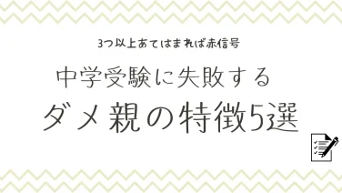 中学受験のコツ中学受験に失敗するダメ親の特徴5選 3つ以上あてはまればスリーアウトだ! ※本記事はADを含みます。教育ママうちの子は中学受験生なのに全然勉強をしてないわ。成績も上がらない。もう小5なのに。他の教育ママたちはどうしているのかしら?このような疑問にお答えします。まず結論から言うと、「いま勉強をしないと将来は~」とい... 2023.08.26 2024.07.06中学受験のコツ
