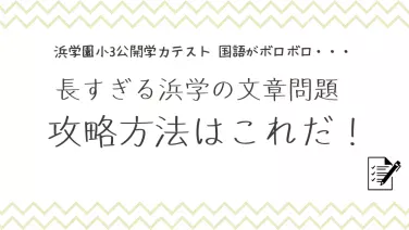 国語浜学園小3公開学力テストに挑戦!国語の文章読解が難しい!?原因と対策を語る! ※本記事はADを含みます。教育ママわが子が浜学園入塾テスト不合格(泣)。国語は半分も解けていなかった。どうしたら点数が上がるの?それに、なるべく上のクラスで入った方がいいとも聞くけどホントなの?このような疑問にお答えします。まず結論から言う... 2023.08.15 2024.07.06国語