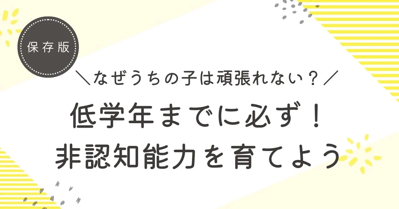 低学年の間に育てるべき能力は、非認知能力。粘り強さや自制心。苦しい勉強でも最後までやりきる能力。本格的な学習に入っていくまでの、いわば基礎体力が非認知能力です。